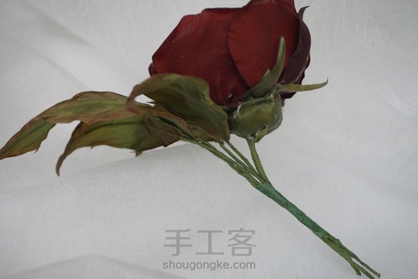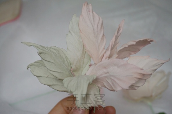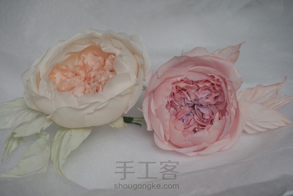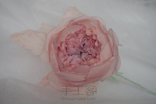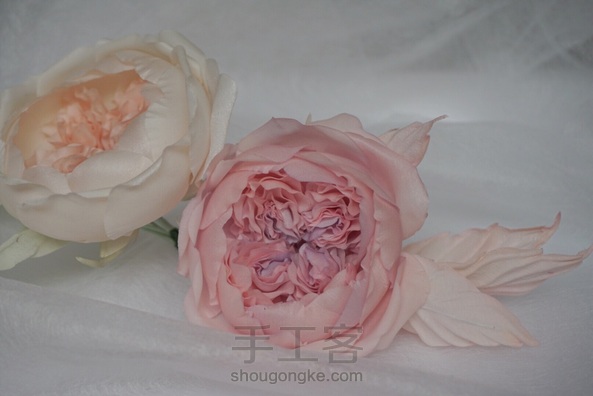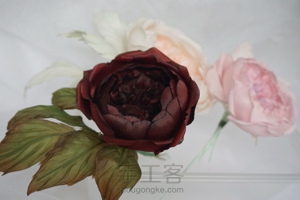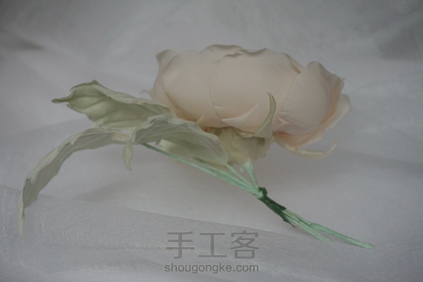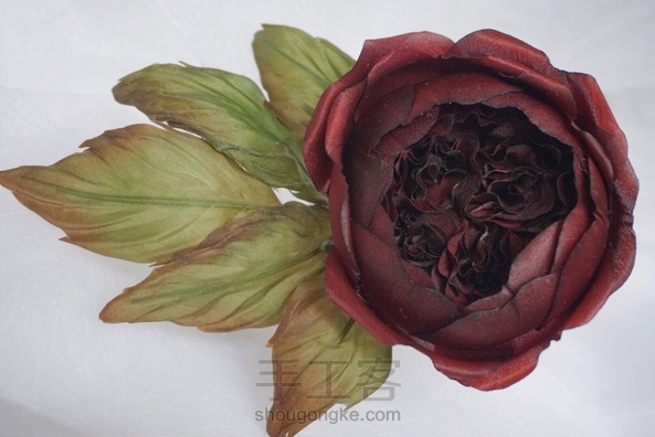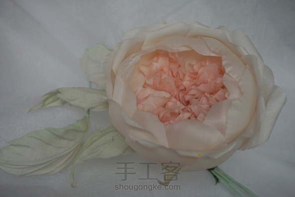 造花奥斯汀 布料:素皱缎 叶子:欧根缎。双皱