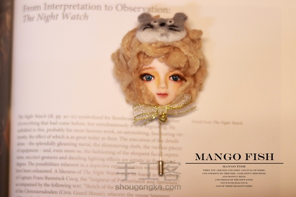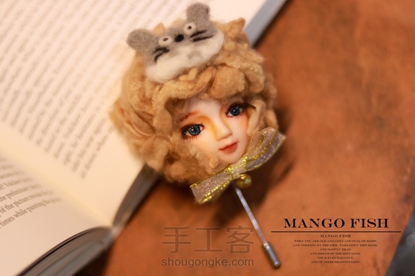 不知道为啥就拍出了圣诞🎄的气息了😂 同样还是软陶和羊毛毡结合制作的【娃娃胸针】 这回是头上带了个龙猫眼罩(・ω