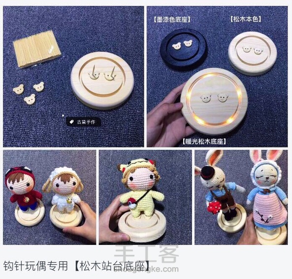 古黛手作 回复 怡乐豆纯手工编织:我自己原创的,Tb上直接找:钩针玩偶专用【松木站台底座】就可以找得到🙈