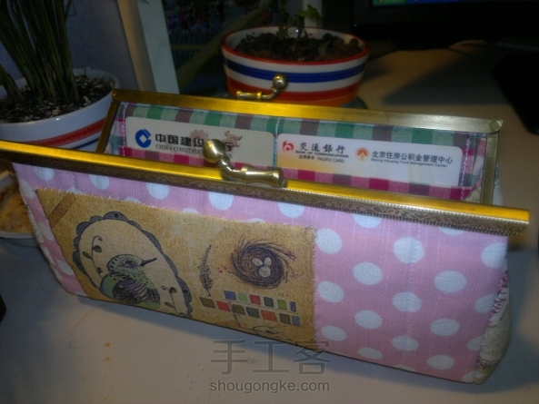 看到口金包的专辑。找出以前做的一款口金照片,这个口金包是两面不同的,一面是缝的小花朵,是从女儿毛衣上拆下来的。另一面是贴缝了一块小鸟图案的定位棉麻。虽然两面没有什么关联,但是每次拿起来都觉得喜悦呢。这个包包已经退休了。发照留念