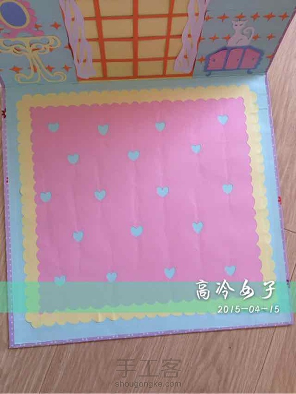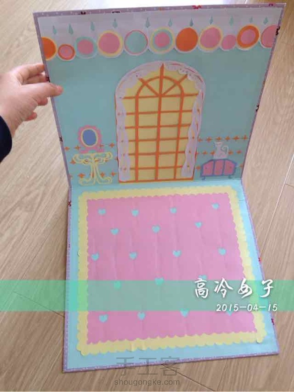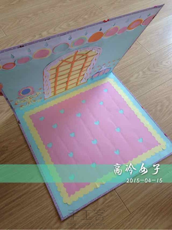 这是我特意做的大贺卡!专门给娃娃拍照用的,这个是第二张,第一张做的比较粗糙坏掉了,于是仔仔细细做了第二张,打开直角状就可以放娃娃摆拍了,合上外面的碎花图片也可以用来拍背景