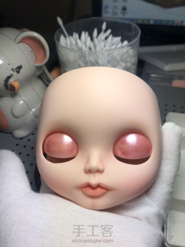 我真是心急呀[捂脸]还没化完妆就想看结果,眼线眉毛唇线都还没画就把它们组装起来了,其实我想看我做的眼片效果,真心漂亮很多哦[呲牙]自我陶醉一会儿吧[愉快]