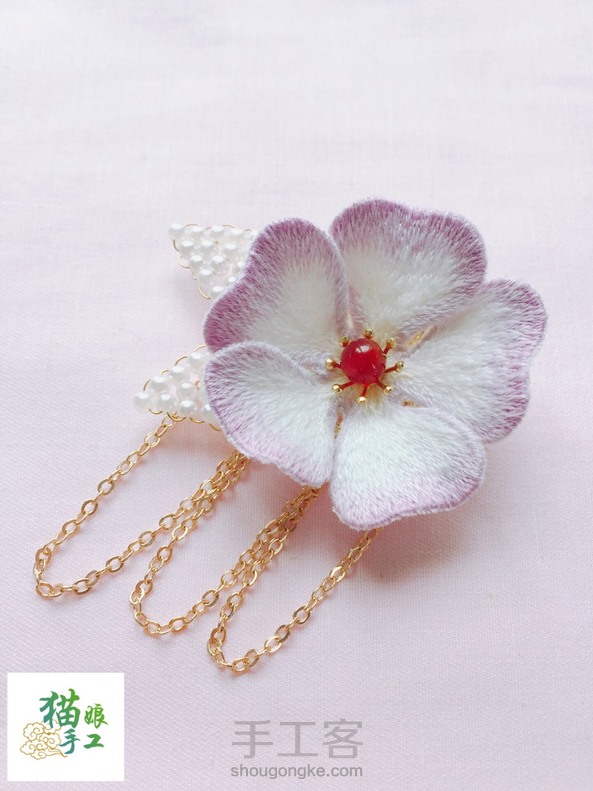 立体刺绣野玫瑰珠花胸针