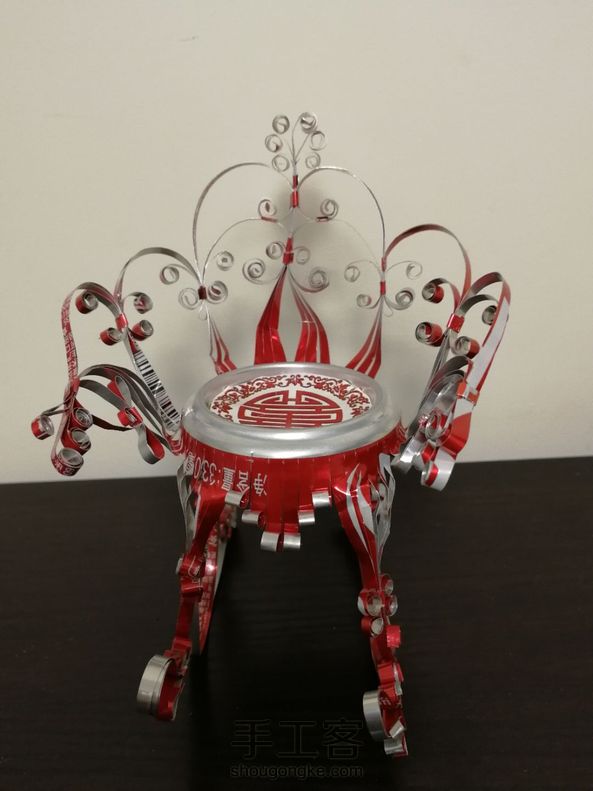雍容华贵的红色摇椅是易拉罐做的