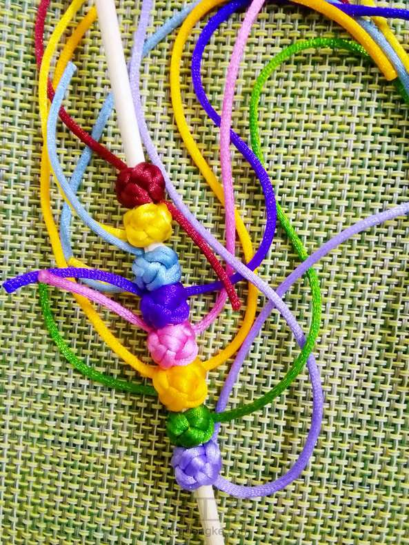 學會做菠蘿結後第一次做這麽多個,參差不齊的! 材料包「湘雲」完成。這菠蘿結的配色醜醜的! 2018.05.29