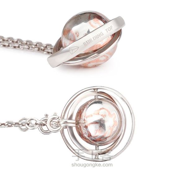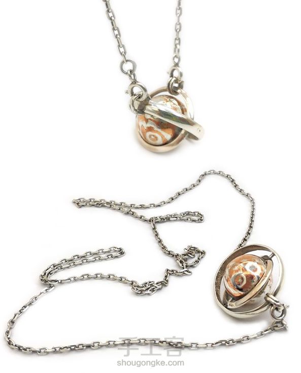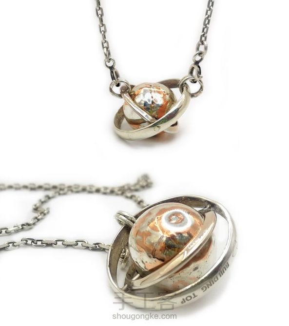 材质:星球吊坠为999纯银足银 + 红铜(纯铜)。内外圆圈与项链为925银。 木纹金工艺。必须手作,耗时耗力,同样耗材料,用两种金属,把握互融的温度,结合成为一种材料,进而设计出其不同的纹理,有木纹的质感,故称为木纹金。 木纹金必须手作来制作原材料,所以无法大批量生产,成本较高,而且纹理有一定的随机性,所以区别于其它首饰,更多体现的是手作的价值,此吊坠项链为孤品。 为品牌限量一个的展示系列。 星球体采用999纯银和纯红铜材料,星球外部内外圆圈与项链为925银。 纯红铜有着玫瑰金类似的红紫色,和纯银的银白色形成对比。因为纯银和纯铜的缘故,越纯的金属单质,就越容易氧化,所以平时需要多擦拭表面的氧化物,也可以不擦,达到氧化做旧的效果。手作和大批量机器生产不同,会有手工留下的制作纹理和肌理,所做球体设计成近似圆球体,不是正圆体。内外圆圈也是近似圆,不是正圆圈。在星球体上设计有类似陨石的圆圈坑和表面斑驳的肌理。望知晓工艺和风格。