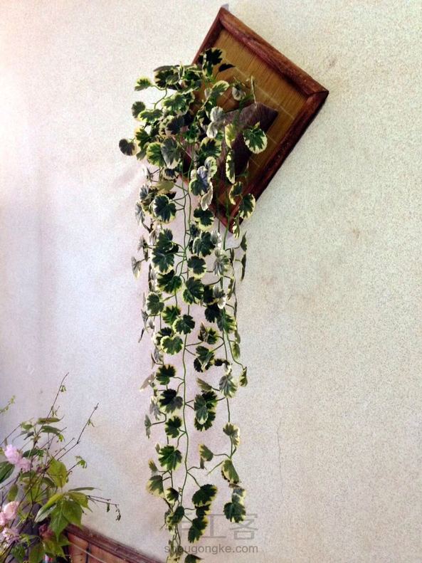 废物利用做壁挂——广告用的泡沫板和废凉席用白胶粘合,边框是买煤气灶带的打包条,中间插花的是用硬纸合栽剪粘上的