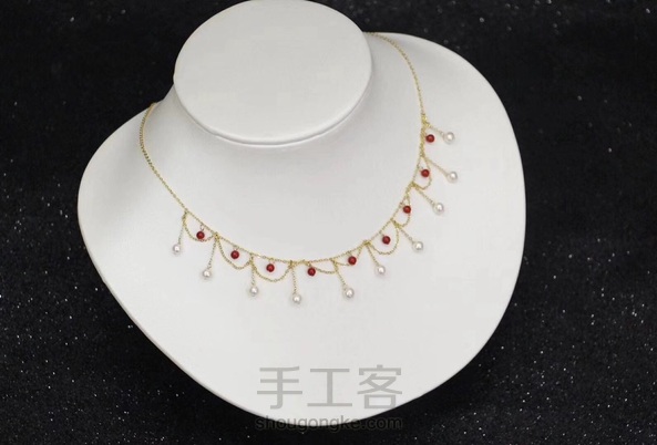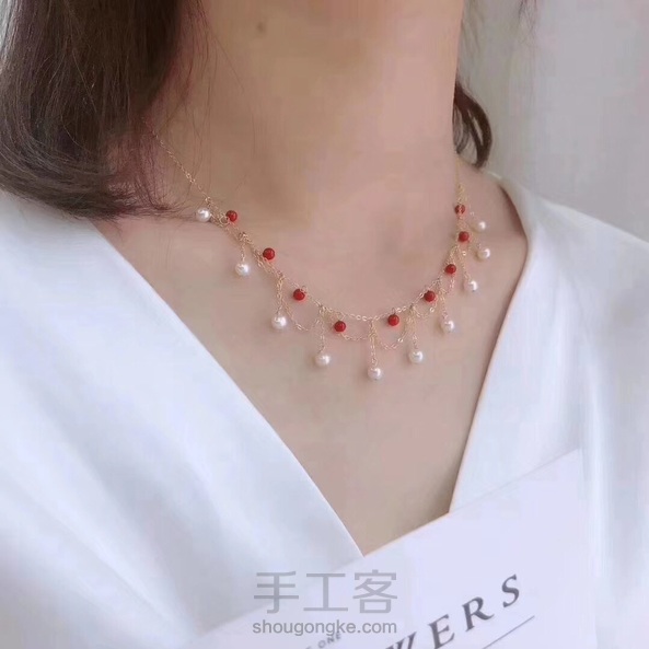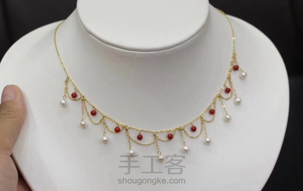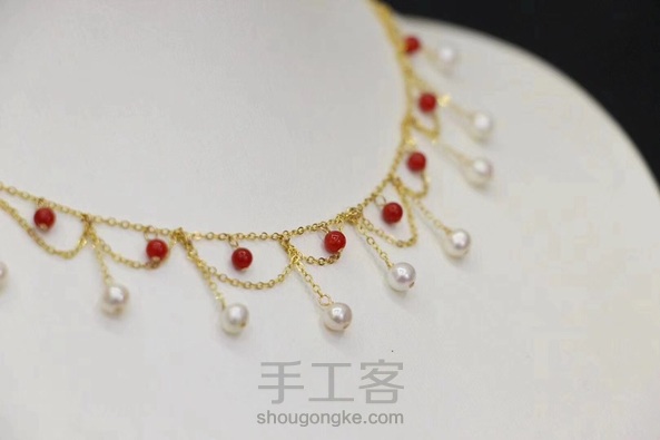 18K金天然珊瑚➕淡水珍珠小波浪choker项链 珊瑚3-4mm、淡水珍珠4-5mm