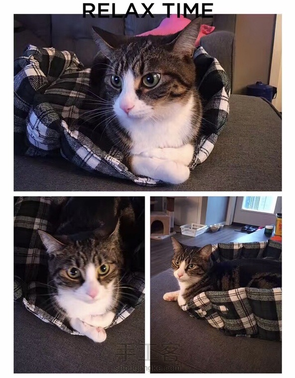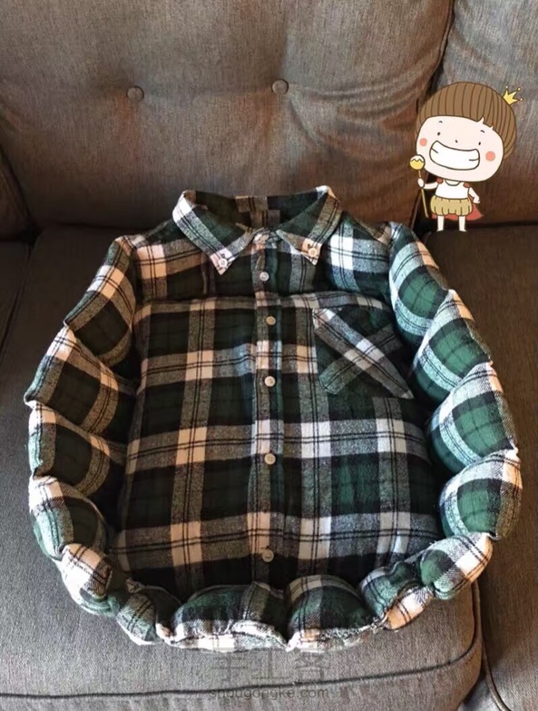 闲置的衬衣改造了一个猫窝,一刀都不用剪哟! 配上一件不穿的短袖做的内胆。 这样外层还可以拆洗(虽然也一直没洗过😂)