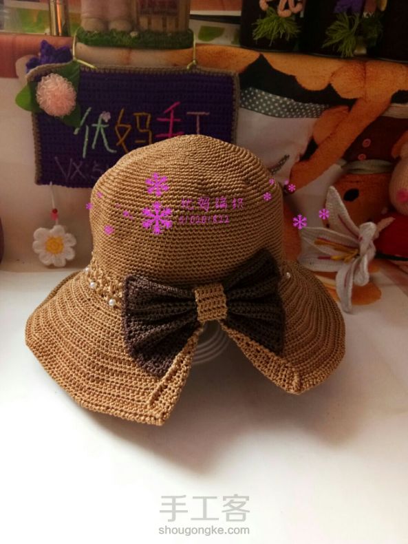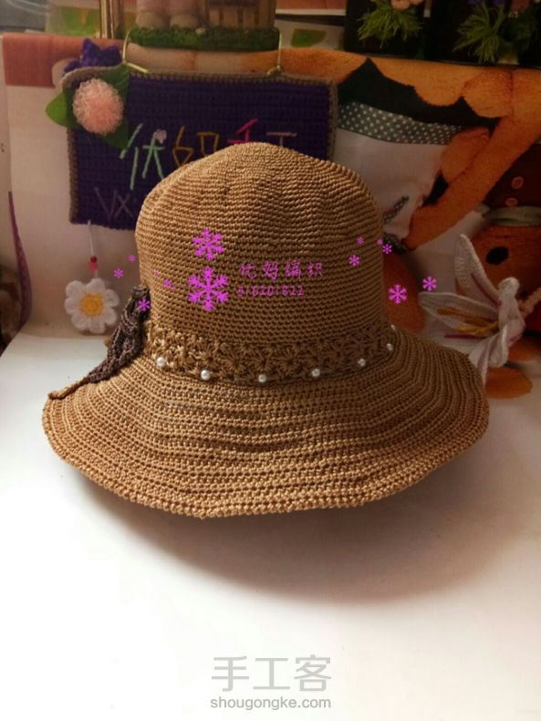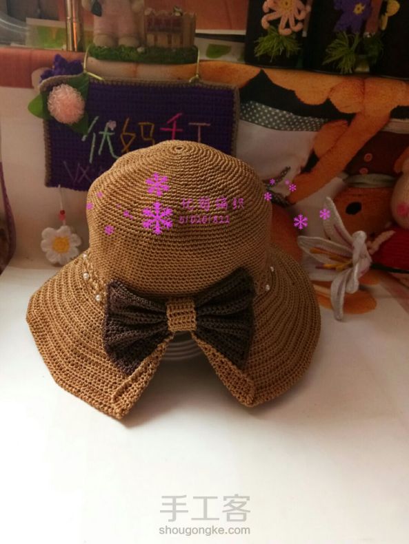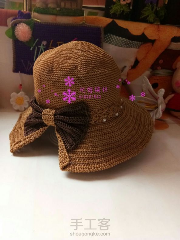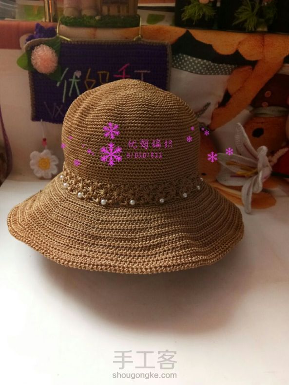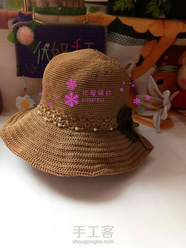 优妈编织空心线夏凉帽