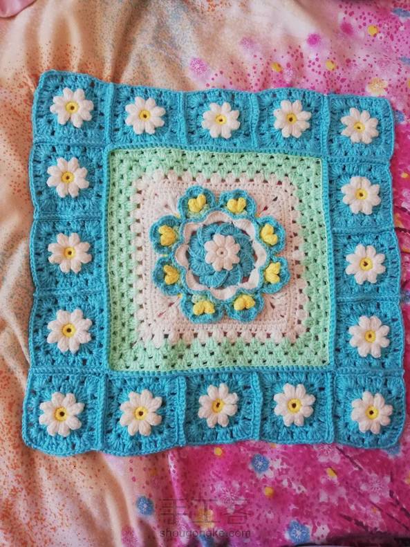 今天七夕,不知道有没有节日徽章!本来想做个雏菊毯子但我实在不是那种能长时间做一个东西的人!所以织了四十多个单元格后,就放置那了,现在翻出来给缝合了,但也不知道能做什么