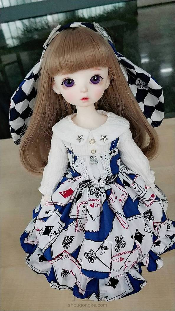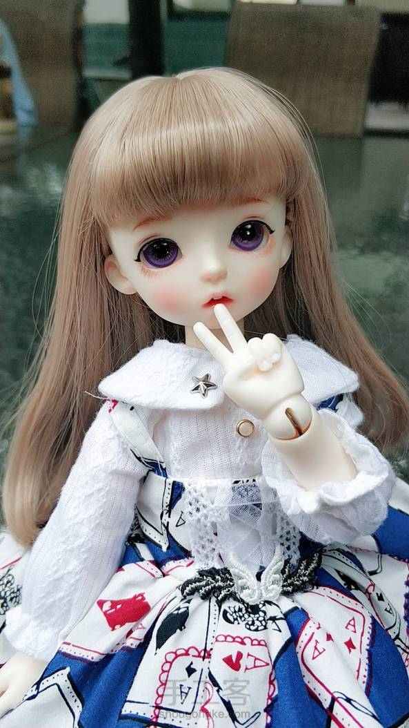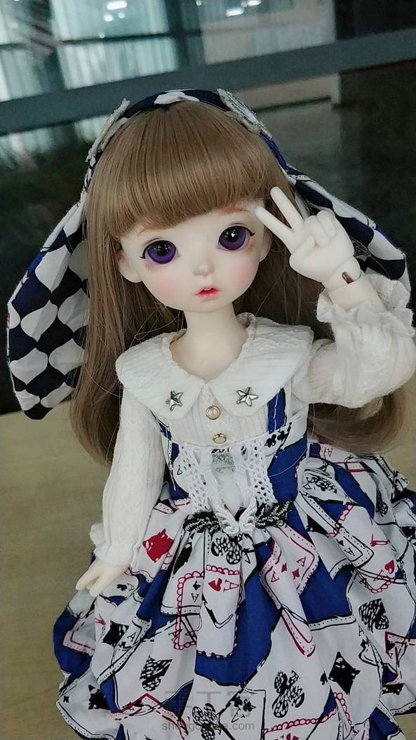 6分bjd娃衣 -方块爱丽丝- “小兔子也是很喜欢剪刀手的哦🐰” 模特:xaga-yoyo(小哈) 我们家小哈好像还没上过镜 最近送妆了,想她(。í _ ì。)