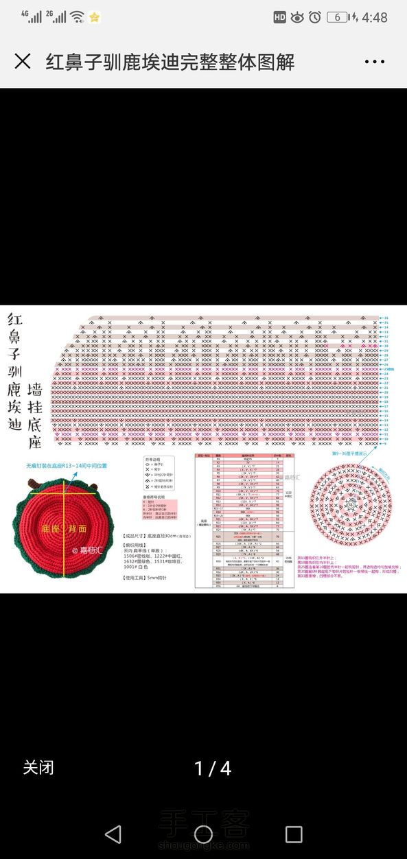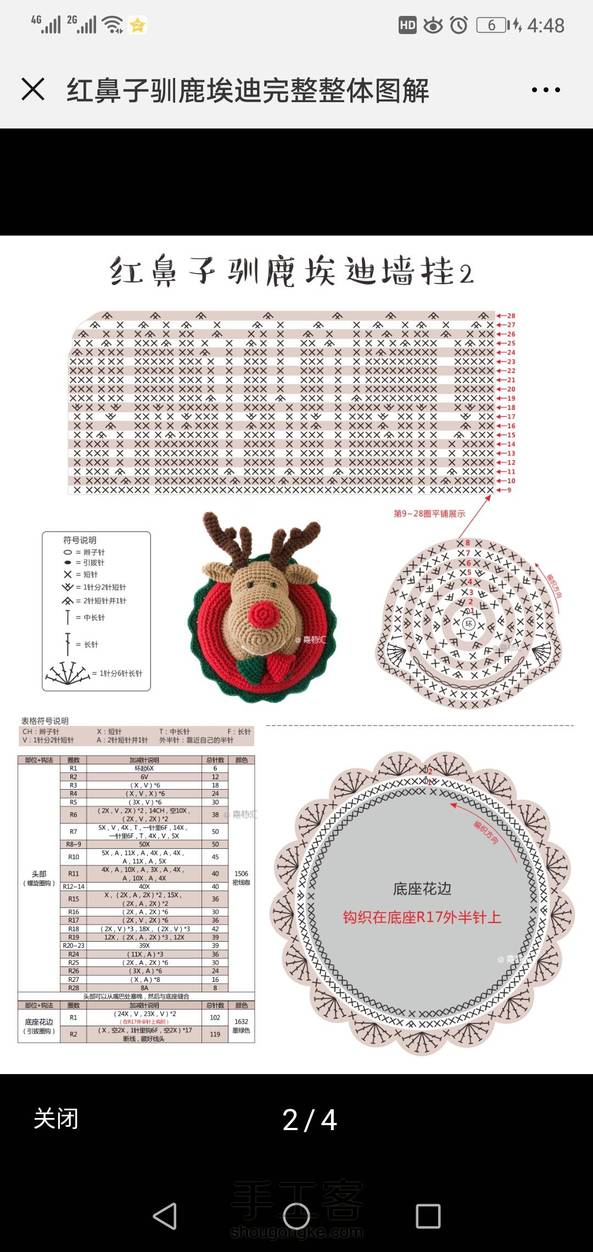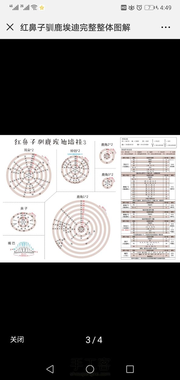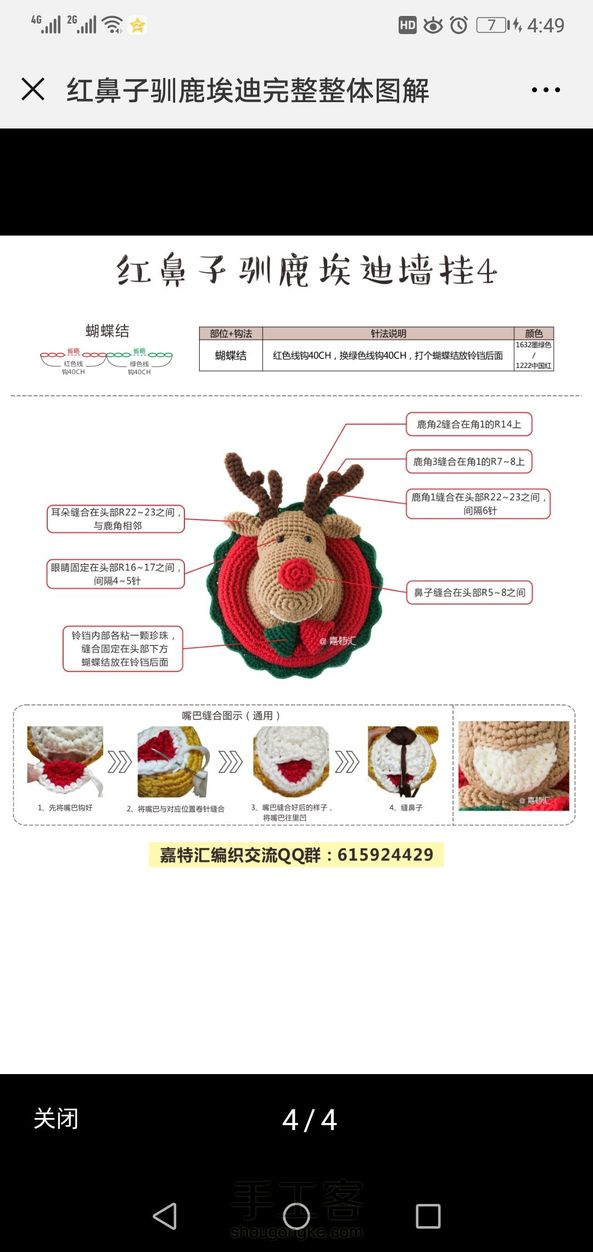 钩针驯鹿墙挂 用的扁平布线