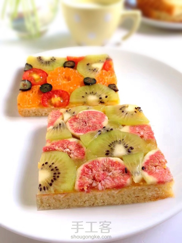 我们家基本上是一星期做一次无油无糖的吐司当早餐,这个季节红薯多水果多,吐司切片后抺一层红薯泥再铺上水果片既养颜又养眼。