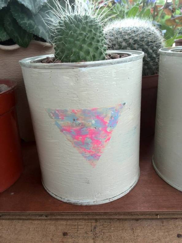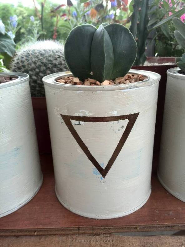 奶粉罐和营养粉罐做的独一无二的花盆。