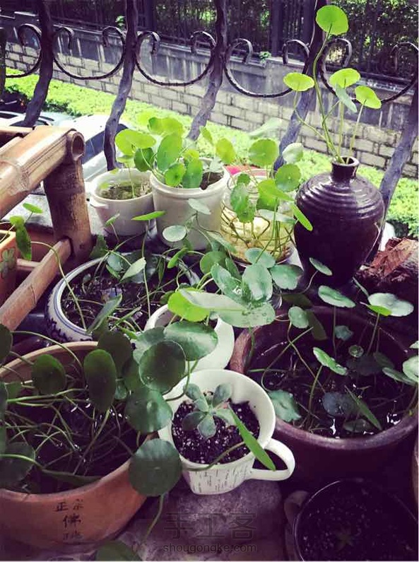 从老家带来一个竹篓养长春藤,玫瑰海棠,月季各种开花。铜钱草肥的流油,雨为何还不停?