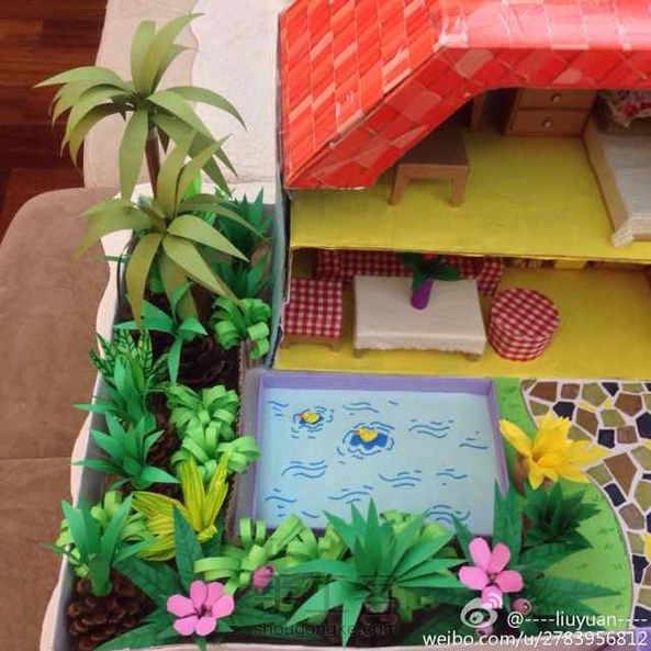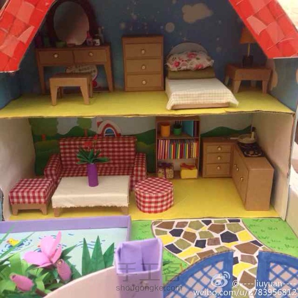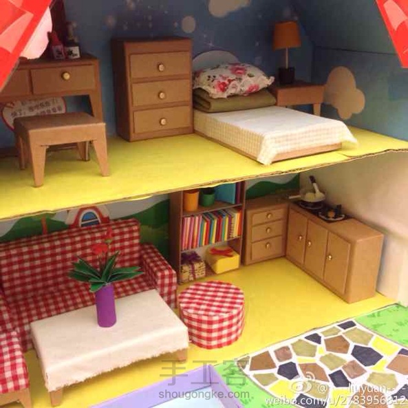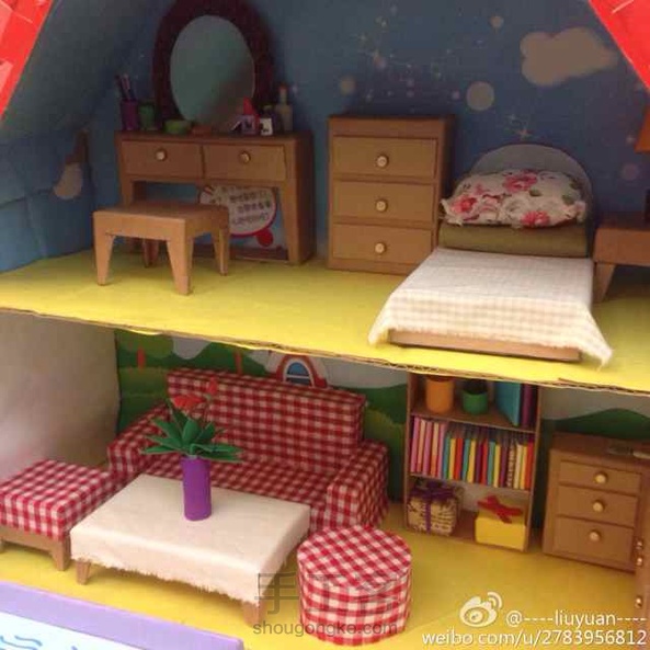 用废纸板,彩色纸,布料做的小屋子~:)