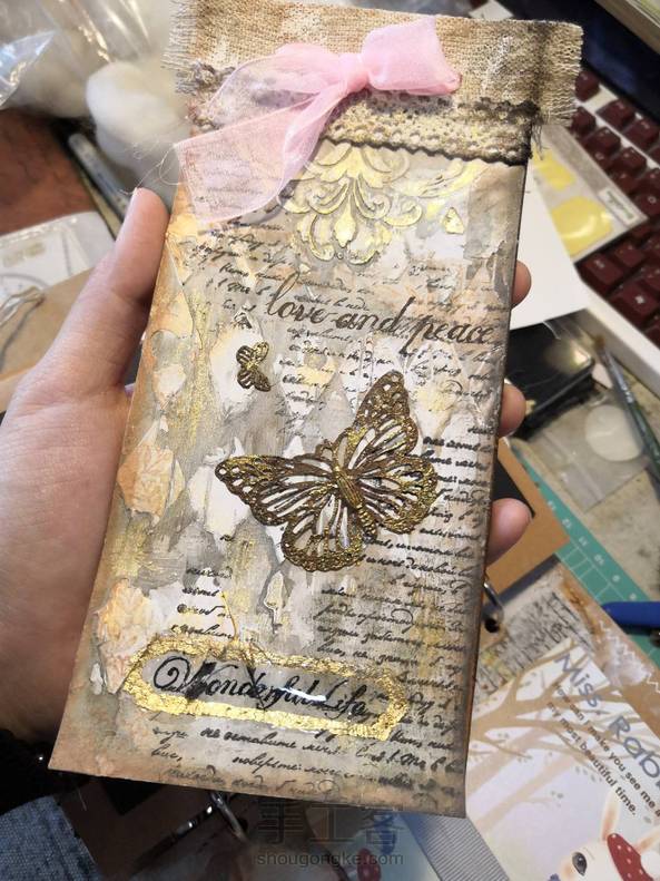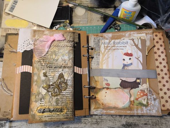 穷人的玩法,凡事亲力亲为,😂😂没有邮票素材就做成撕毁的旧邮票效果。翻车的页面就在内袋插入明信片挡住。uv胶与塑形膏无法粘合,掉下来了,用快干胶粘上好的没有浪费!junkjournal真是好多废物利用啊~