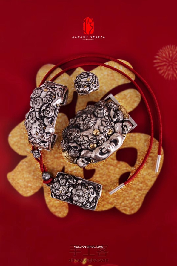 【古祿·工作室】 品牌:工兮·『舞狮』系列 作品诠释:狮子吼,百兽惊。狮兽祥瑞,无畏自在,乃是辟邪纳吉的瑞物。 北方舞狮,吉祥旺宅,和境安宁。『舞狮』系列,狮面人手,金眸利齿,扑跌翻腾皆有高艺。独狮肌骨丰盈,神态傲睿;双狮扭首张望,奋身搏力,皆有威武祥和之相。