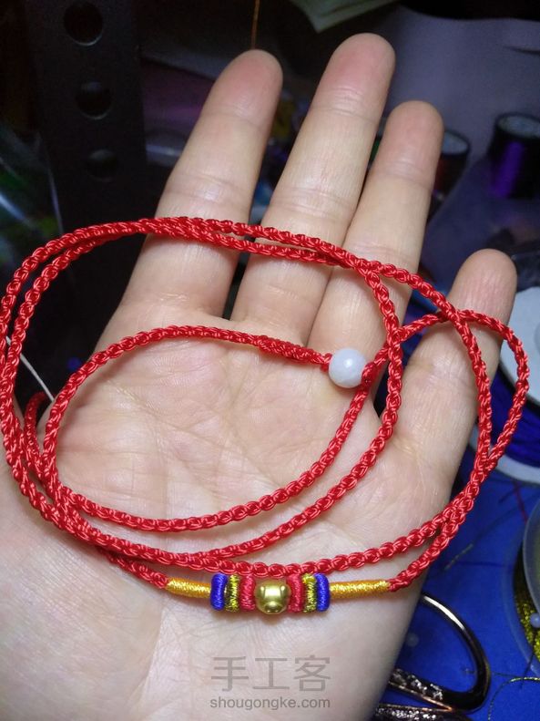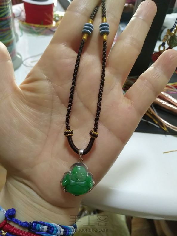 顾客定制,图三换了一根绳。不对,是两根绳,穿吊坠和珠子的是A玉线,穿佛头的是B玉线,第一次这样换绳,自己琢磨的,又学会一种穿三通的方法👏👏👏