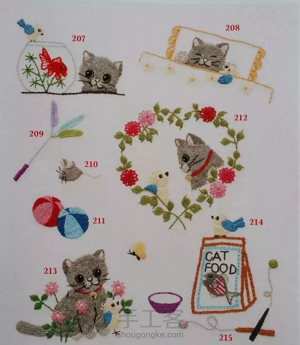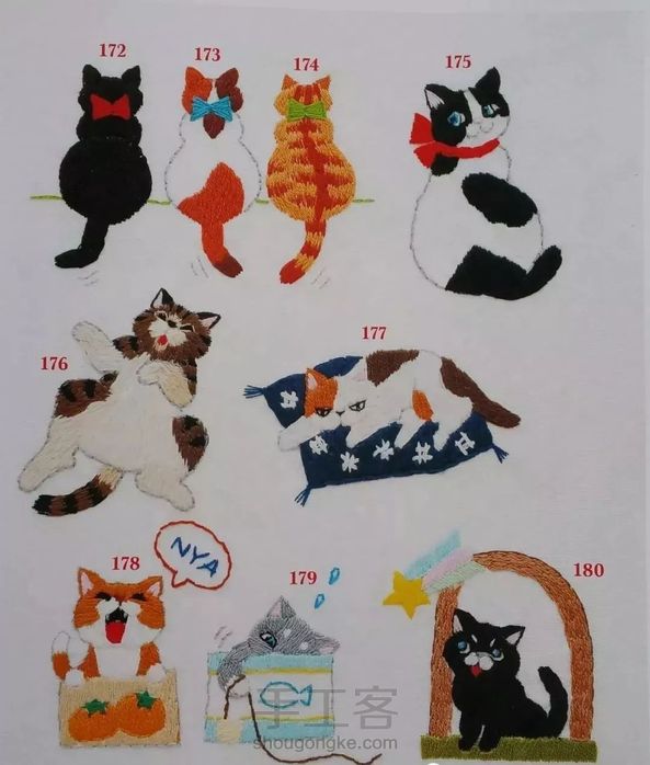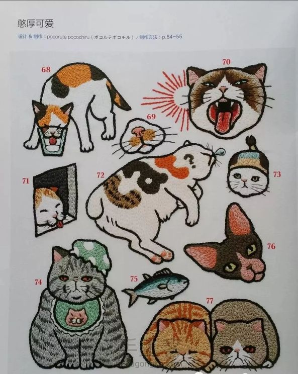 小猫咪刺绣,可爱的喵星人🐈形态各异针法简单