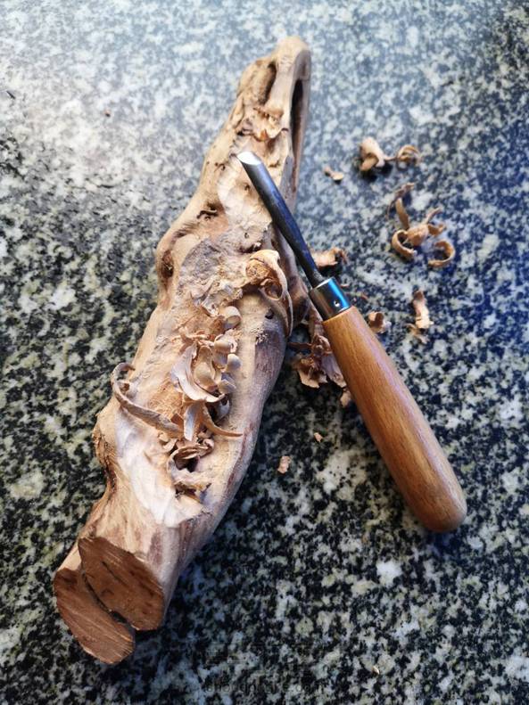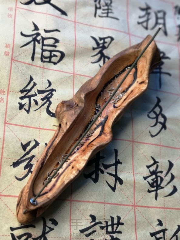 路过雕刻铺,要了点老师做“根雕茶几”锯下的香樟根,加了颗自行车钢丝冒,做了个香插。 做的时候,香樟的香气扑鼻!