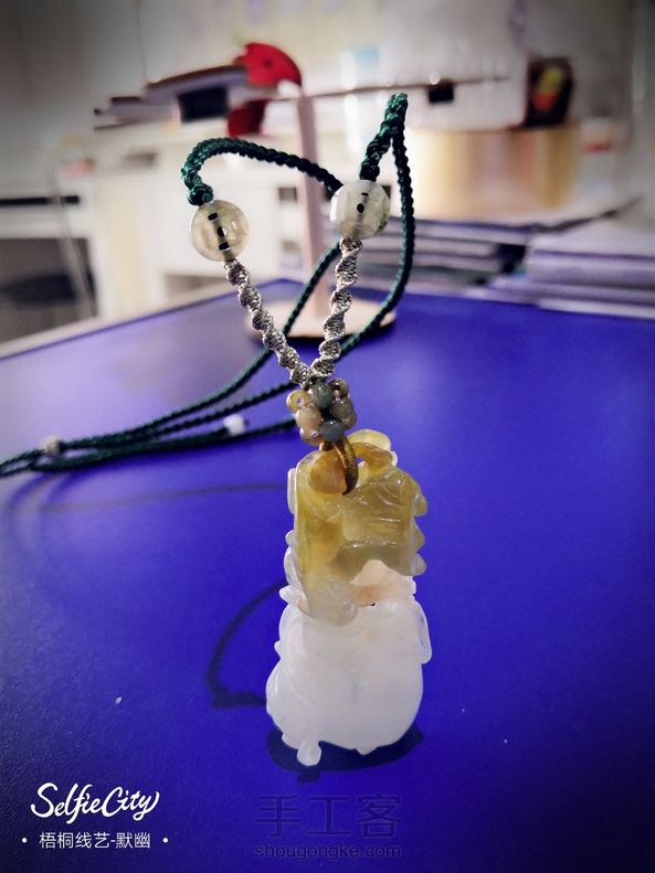 旧物改造 小珠子穿了个花球当顶珠,幻彩金线点缀,精工四股辫是主体线,简简单单又不平庸