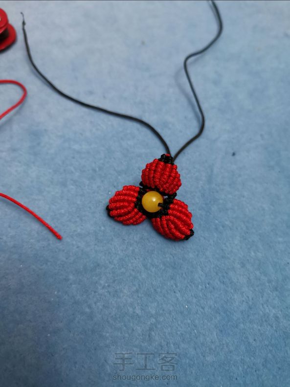 徽章 本来是做莲花的,结果有瓣不小心多了根线,剩下的就乱了,懒得折腾了,就连起来弄了颗珠子试了下