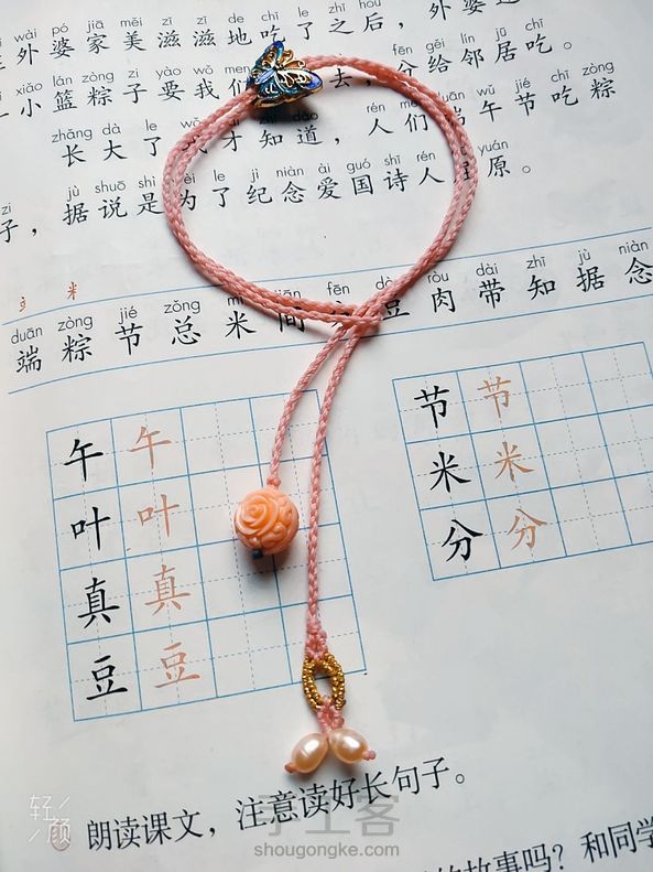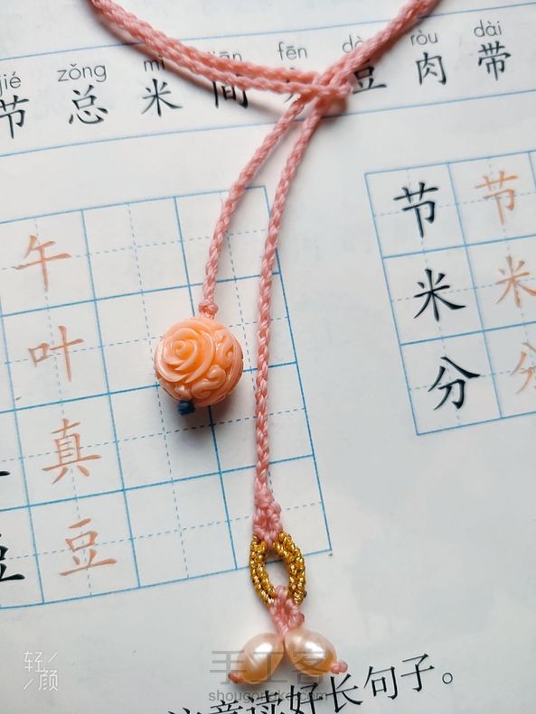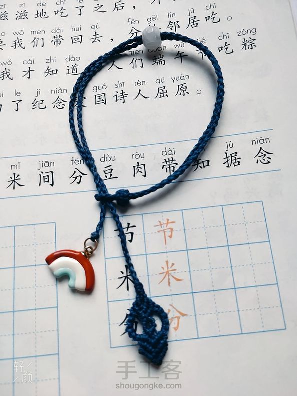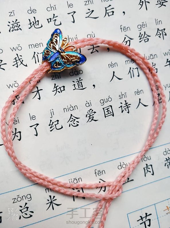有教程编的两款手绳和脚绳蓝色的是手绳,粉红色的是脚绳,配件是925银滴油彩虹和925银烧蓝蝴蝶,粉红色的贝雕花珠。绿色翡翠。