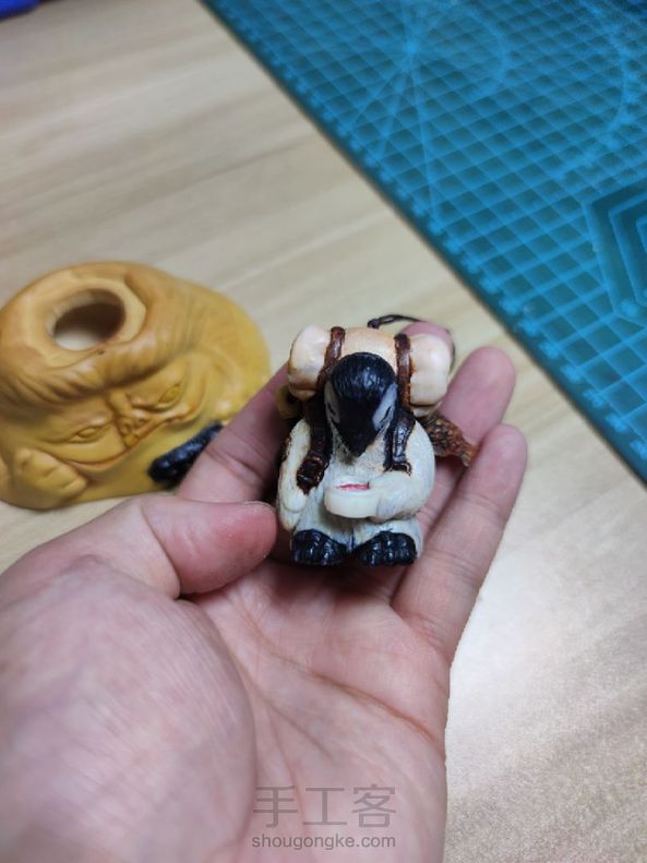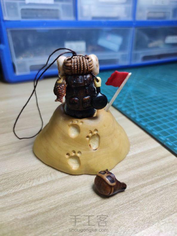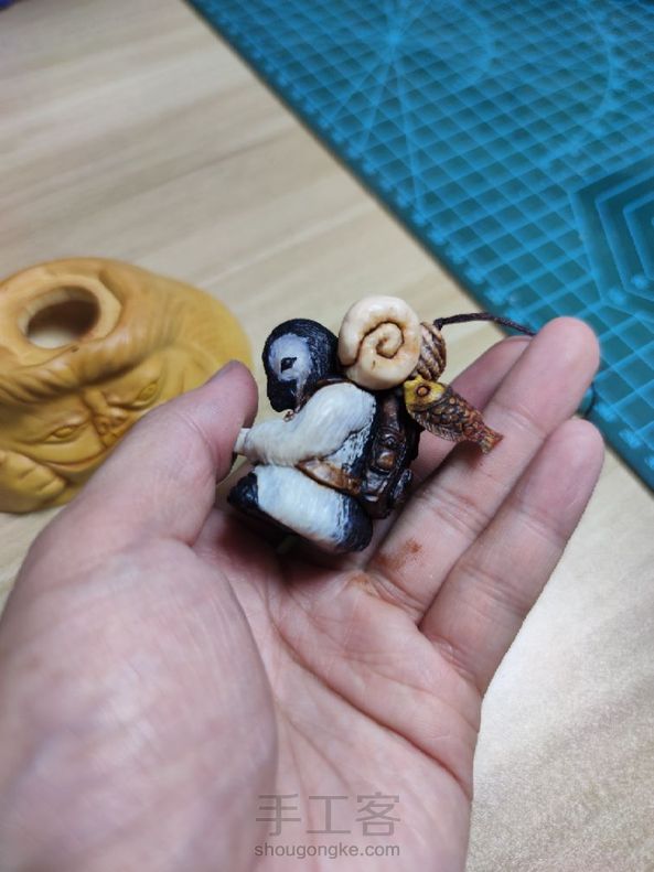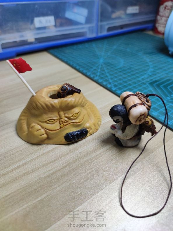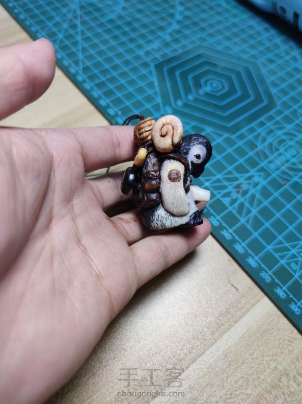 南极科考队偶遇大脚雪人。手把件,摆台,置物三合一。企鹅用材鹿角,平底锅用材黑牛角,小叶黄杨木,咸鱼用材鹿角,帽子用材鹿角,旗帜用材球角,雪人用材小叶黄杨木,黑檀木。