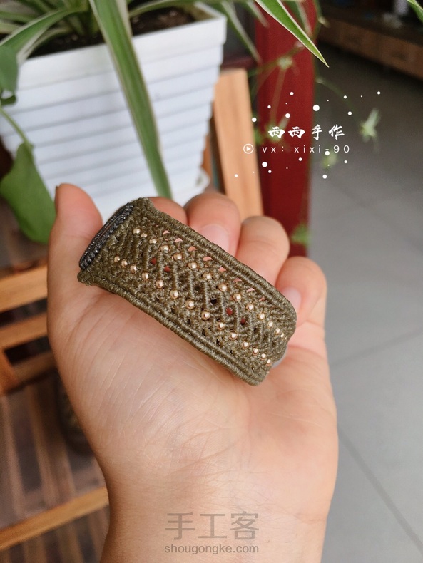最近爱上这种宽版手绳,用了一种很少用的颜色,编完感觉还蛮复古的
