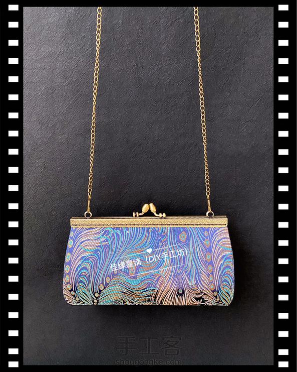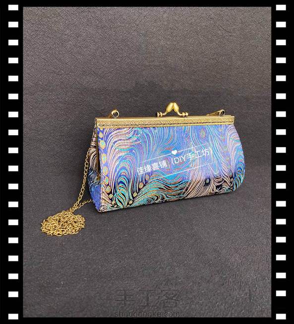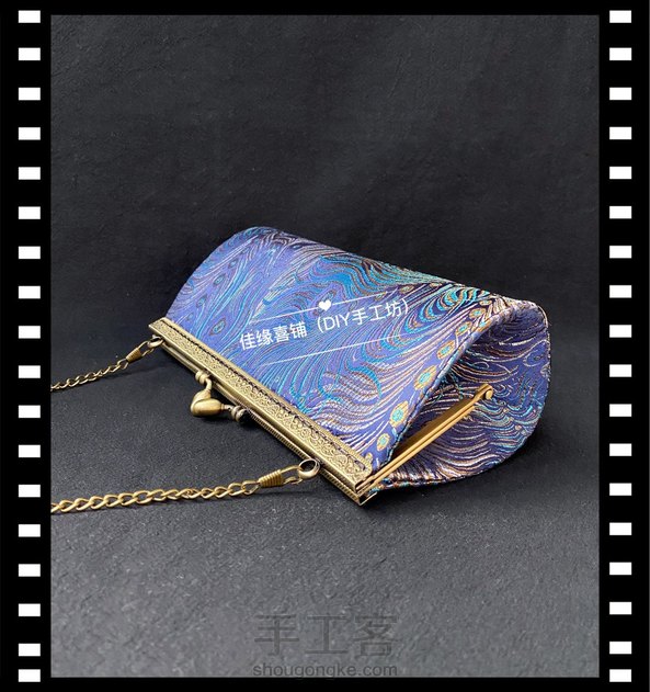 蓝底孔雀尾织锦缎面料做的手工包包😊