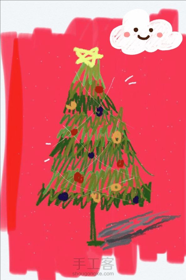 给11#小熊用收集蛋糕丝带做个🎀+妞的🍓👸→妞手绘🎄。👩❤️👧