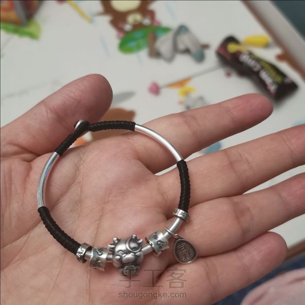 《很漂亮,感谢老师分享的教程,刚开始线选错了用的扁蜡线,导致花瓣上面有很多小孔,之后补救了一下串了一些珠子,成品很喜欢。》