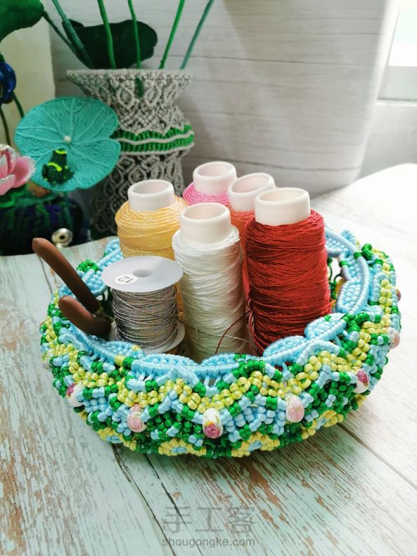 本来想编小钵盆,越编越大,最后用20圈勉强收完线。只能倒过来用。😂😅