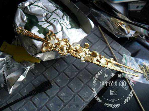 剑网三藏剑橙武山居问水衍生簪 当初绕铜丝的时候手上真的是伤痕累累。。。 纯铜材质加碎水晶 ^ω^