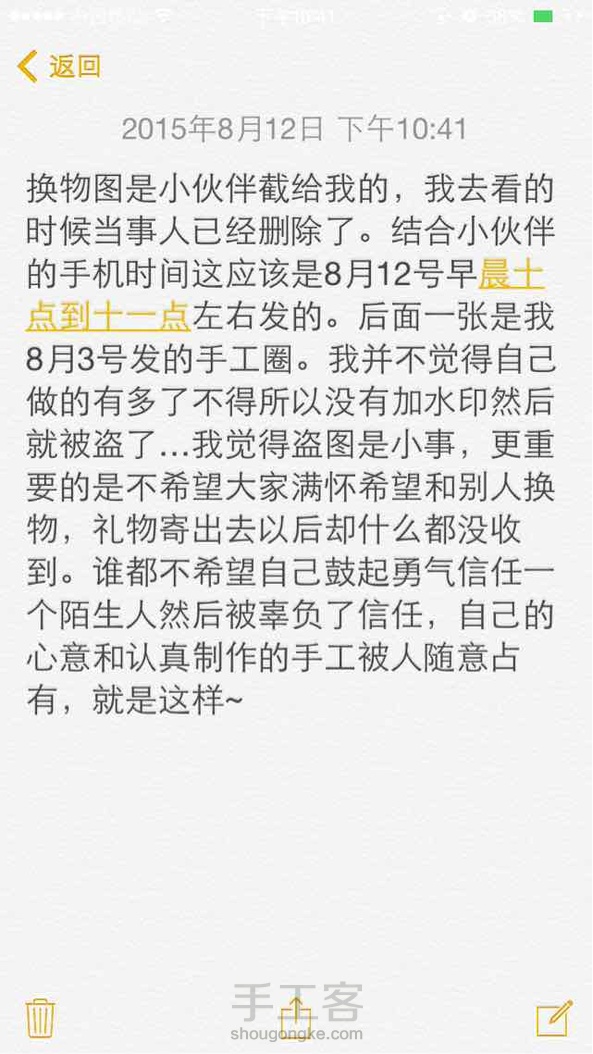 芳汇手作:天啦,那个“乌拉汪”今天还来跟我聊了。我直接就说嫌邮费贵你可以不要。他还生气呢。没想到是个骗子!大家要注意啦。我换东西都是走链接的,不然垫了邮费寄过去就亏大发了。