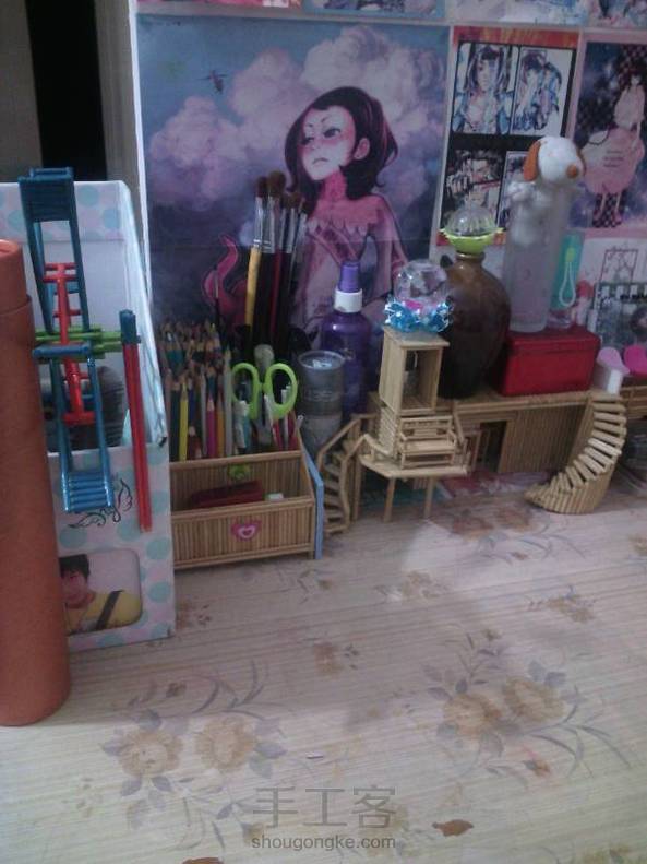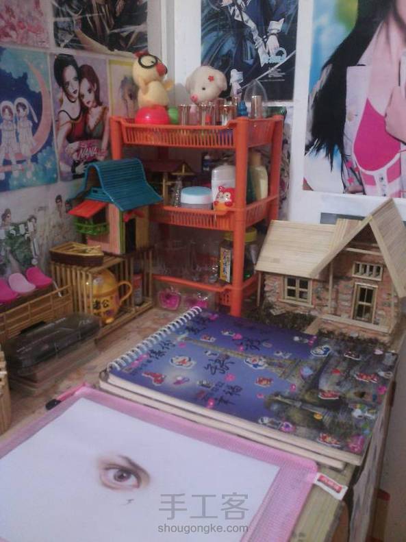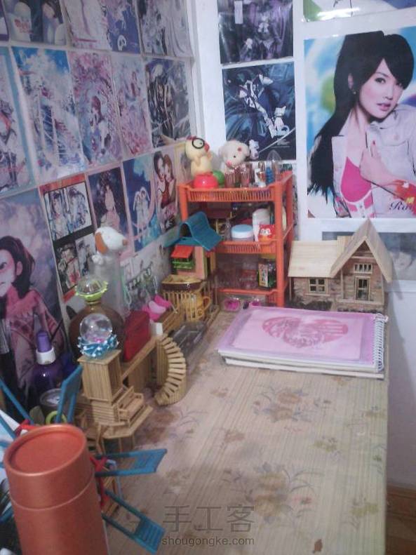 先让大家看看我的房间,有不少我做的手工,这个不知道该选什么标题。最擅长画画做手工,另外唱歌跳舞也还可以,我新来的,所以只好慢慢发库存了。
