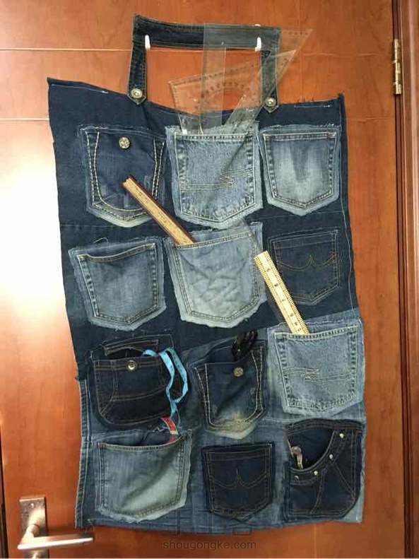 用废旧的牛仔裤做的工具收纳挂袋