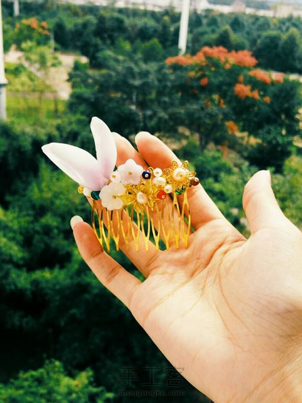 有攸:两片料器花瓣乍看得像兔耳朵~