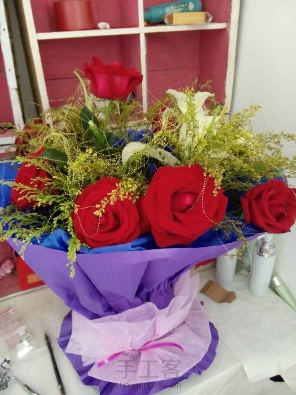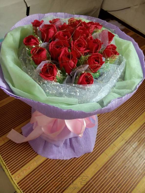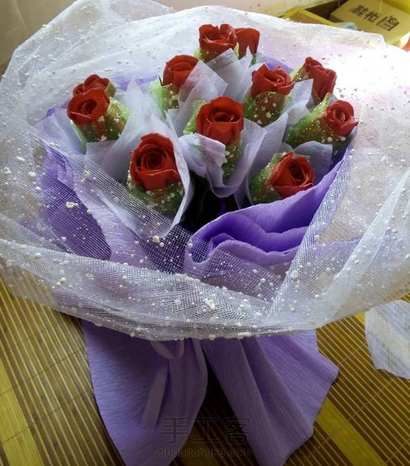 真的玫瑰固然好看,可是它凋零的真的很快,每天利用空闲时间将近做了这么一束玫瑰,做好之后预定玫瑰的人居然来了一句”我老婆说花不好看,能退吗”,我也是醉了,手工投入的感情,是能用钱衡量的吗,你欣赏不了却也扫了我的兴致,感觉真像踩了一坨狗屎。
