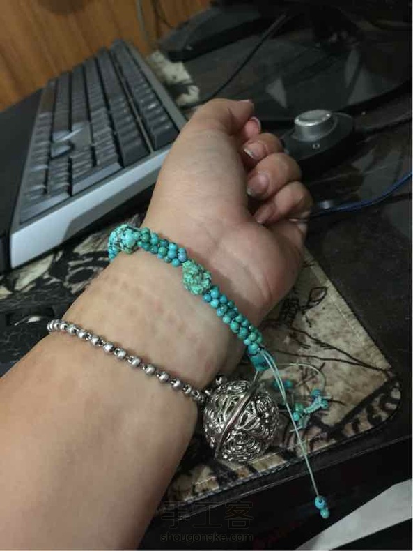 顾客手上戴了一条珊瑚毛毛虫🐛的手链,觉得有点意思,于是乎……中午没啥人沏茶,点香,music!我惬意的准备享受午后闲暇,发现我没有珊瑚😯!好吧!索性就任性到底!然后……这条蓝色的毛毛虫🐛就到生了😁!