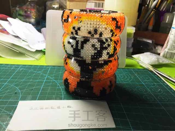 #万圣节玩转手镯#两个手机的闪光灯真不是盖哒~这么亮。可惜的是图案做了一圈却照不全~