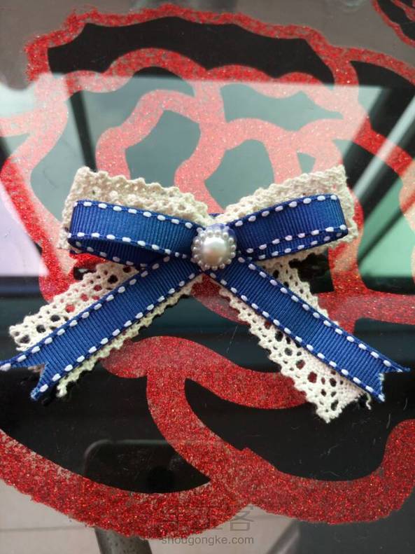 《很漂亮,感谢老师分享的教程,刚开始线选错了用的扁蜡线,导致花瓣上面有很多小孔,之后补救了一下串了一些珠子,成品很喜欢。》