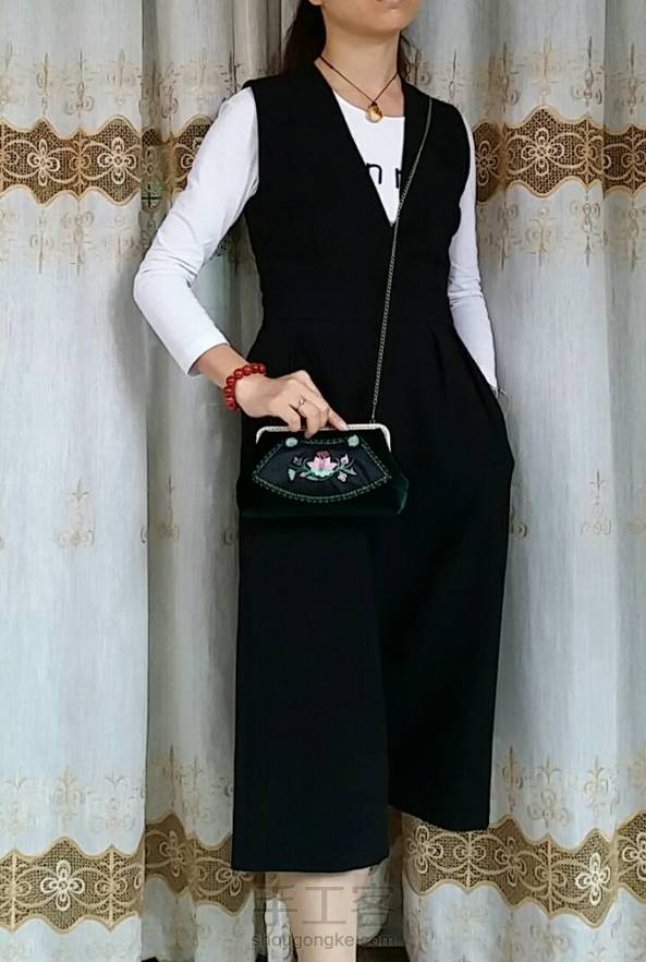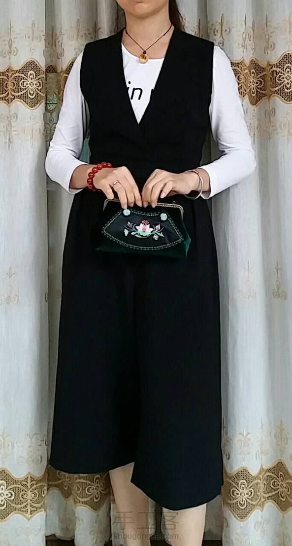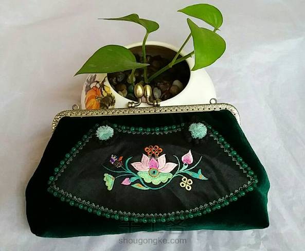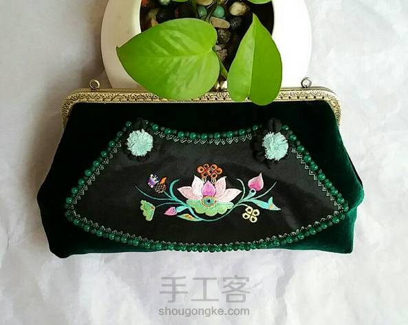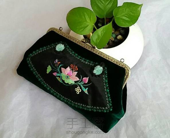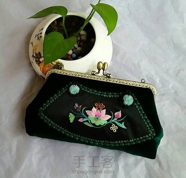 老绣丝绒口金包