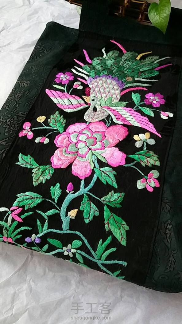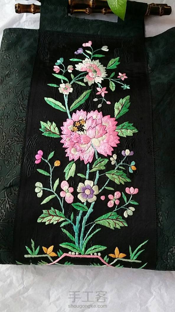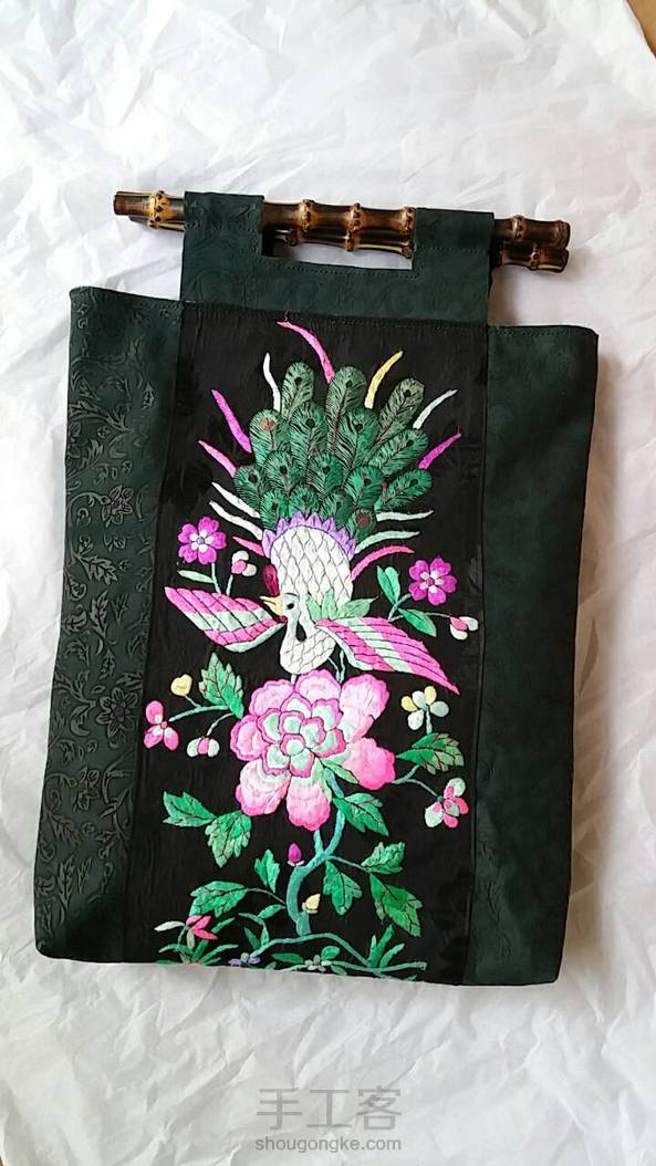 双面老绣雕花牛皮竹提手复古大包包
