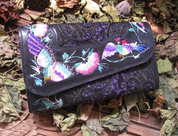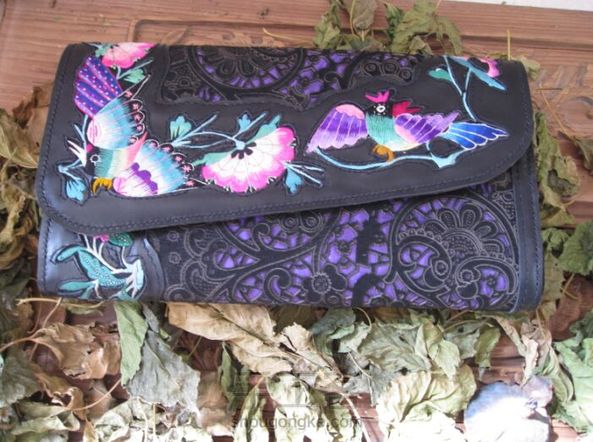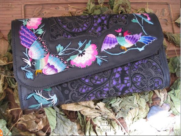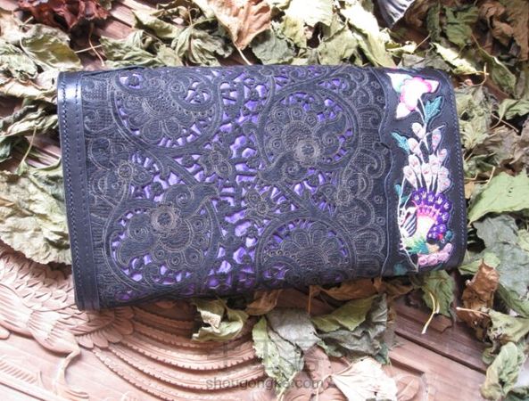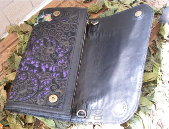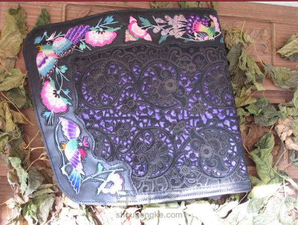 镶嵌老绣拼接镂空雕花毛皮料特色手拿包