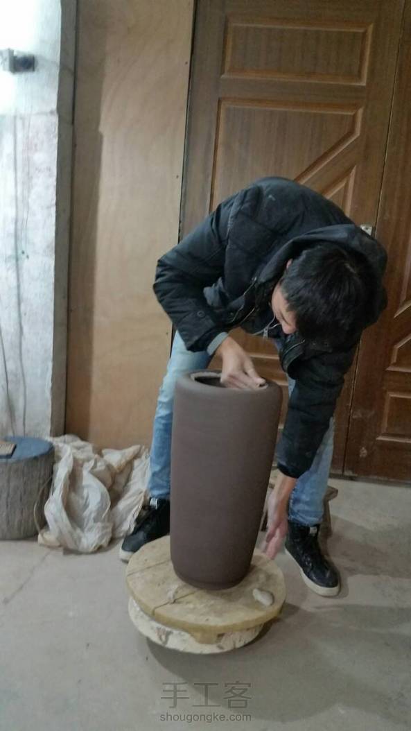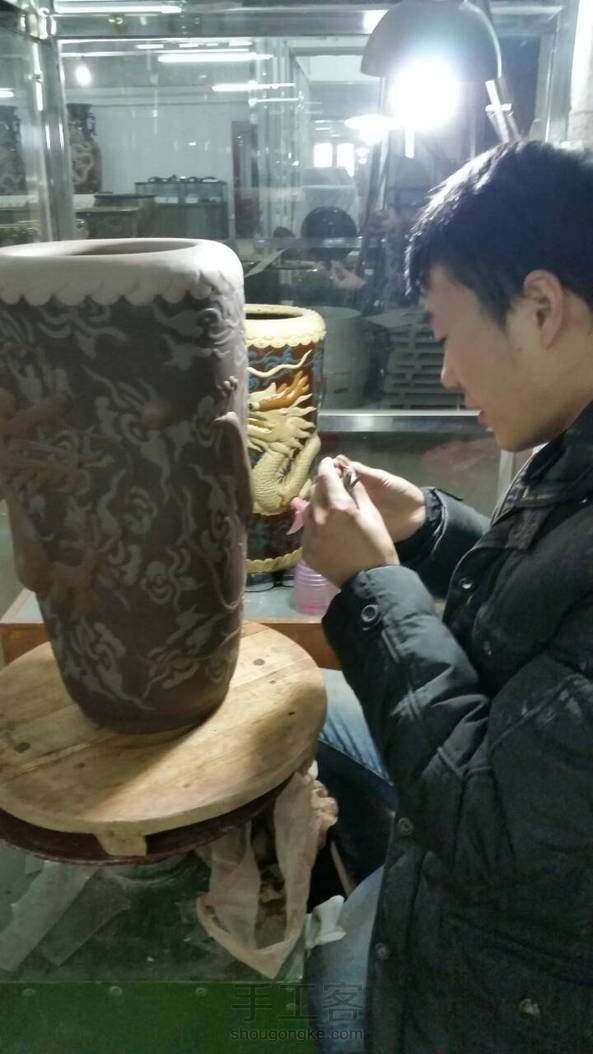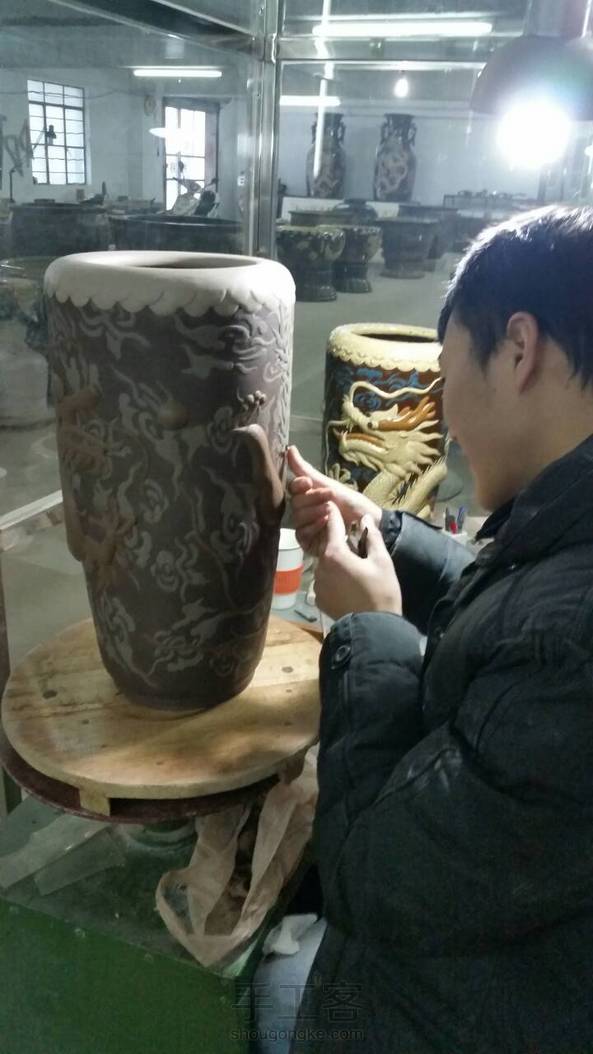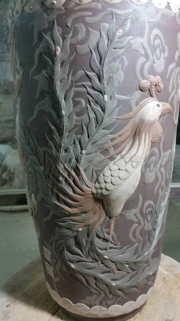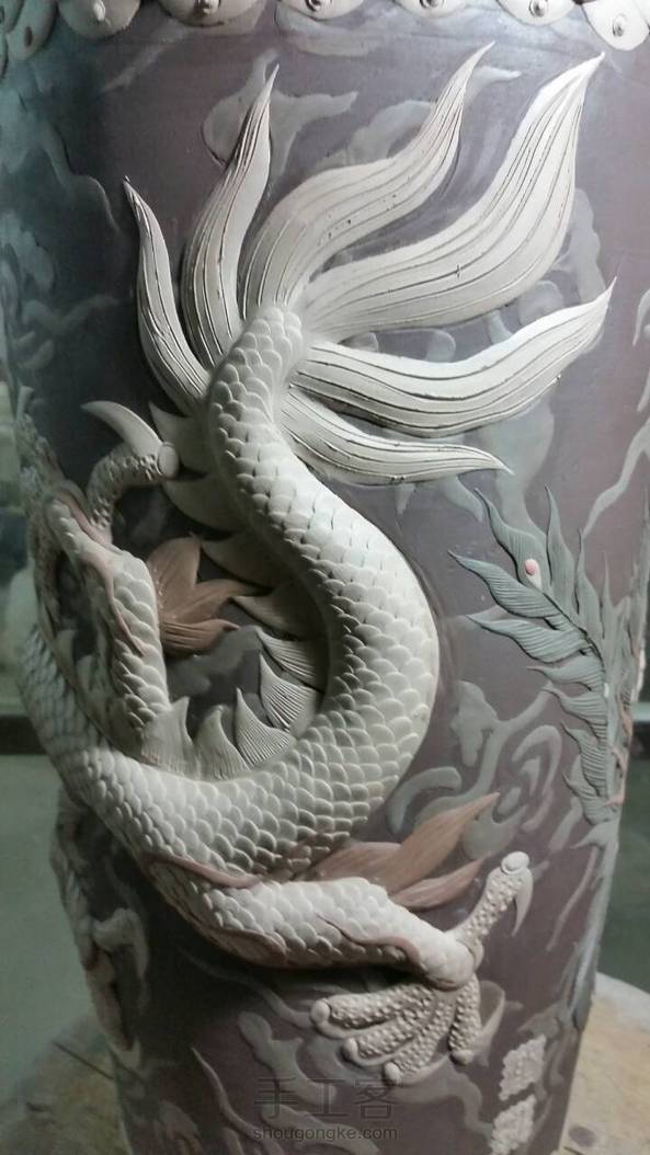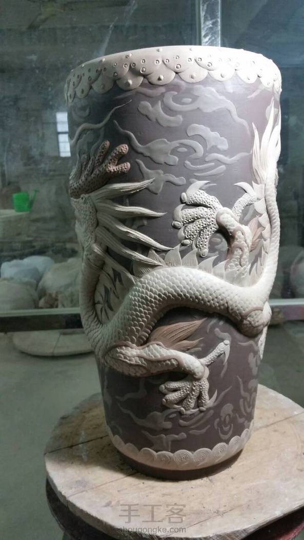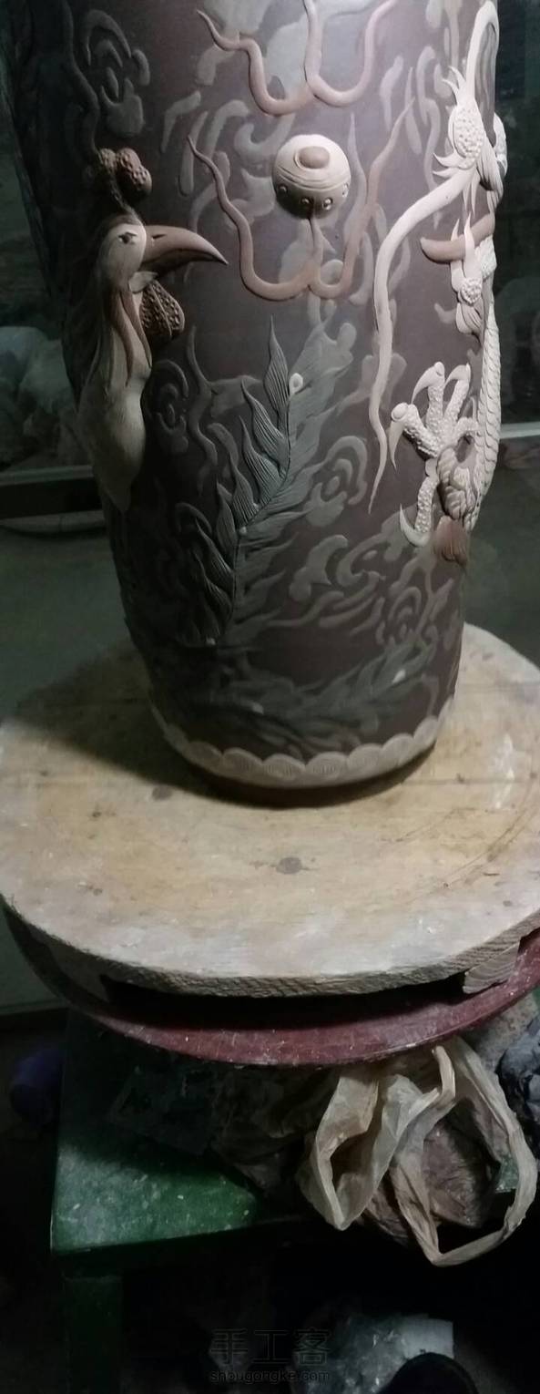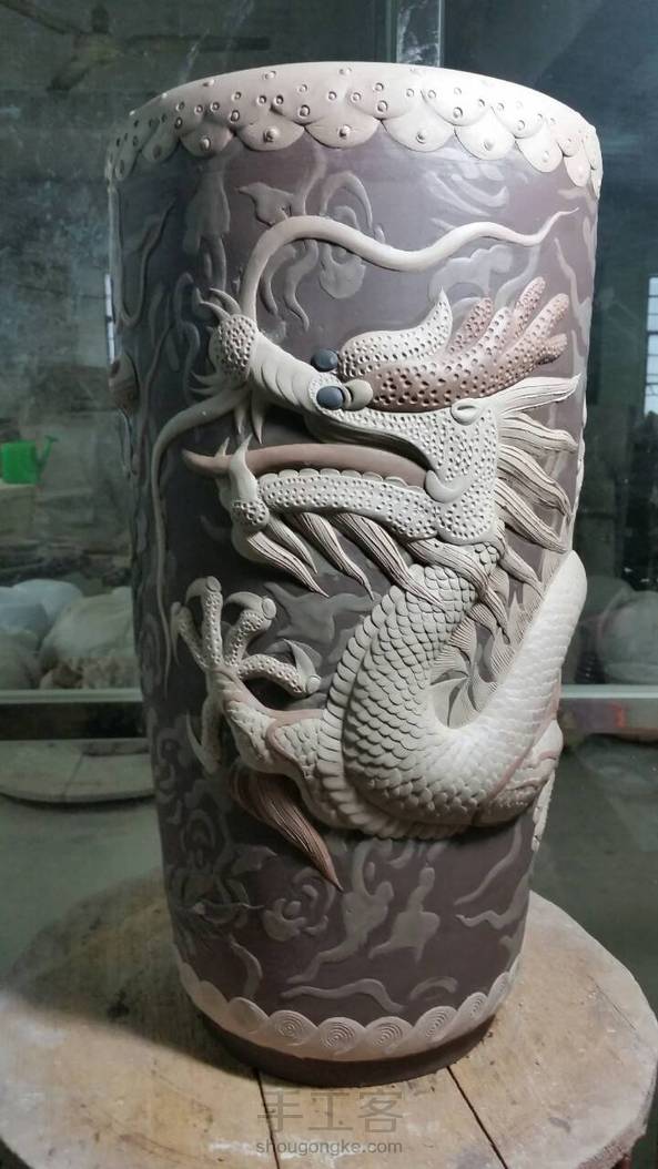 【均陶】又一款龙凤呈祥签筒,高38厘米,在室内室外一样冷的环境下好不容易做好的