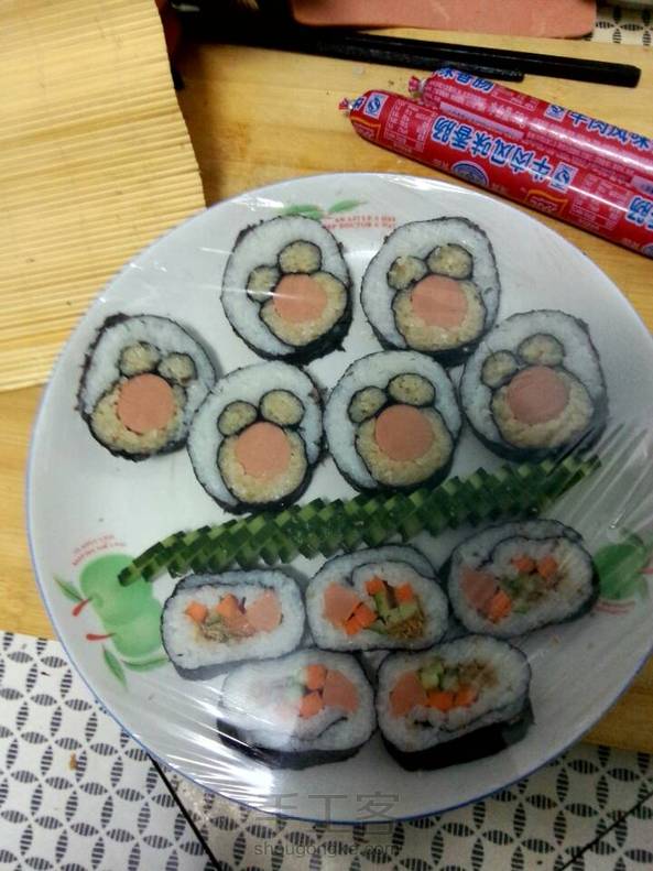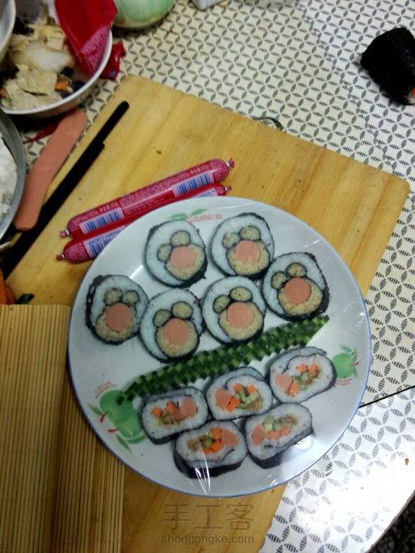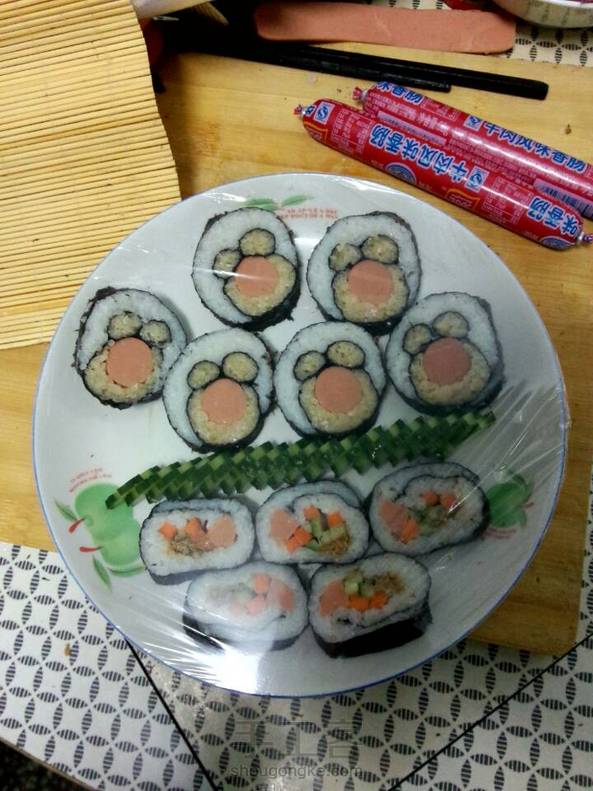 我和爸爸一起做的寿司,有没有萌萌哒?会发教程滴,第一次做,做了一个小时😨😨明天还要全校评比,费了我好大功夫。