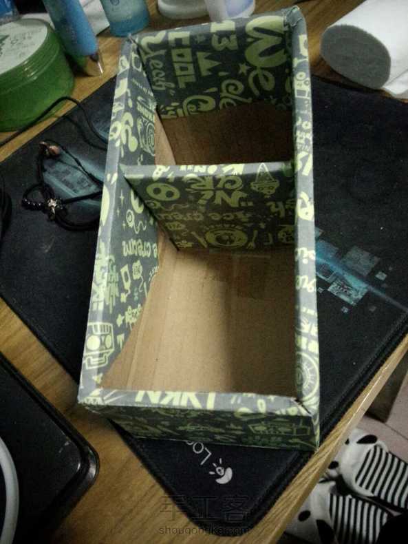 鞋盒剪的~ 包书皮那种纸剩下的纸包的~ 还有隔层哦亲